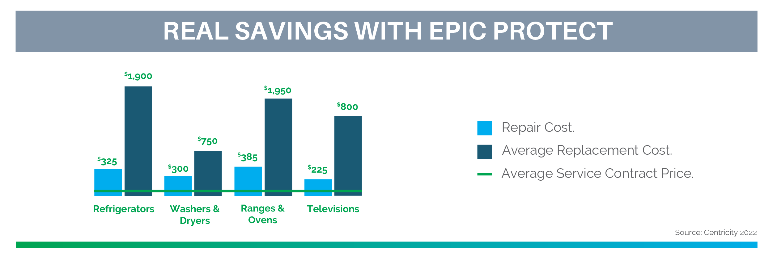 EPIC Protect is an extended protection plan that will protect your covered appliance(s)/electronic(s) from mechanical and electrical failures as well as the labor cost and charges for the trip to your home, so you pay nothing out of pocket.
